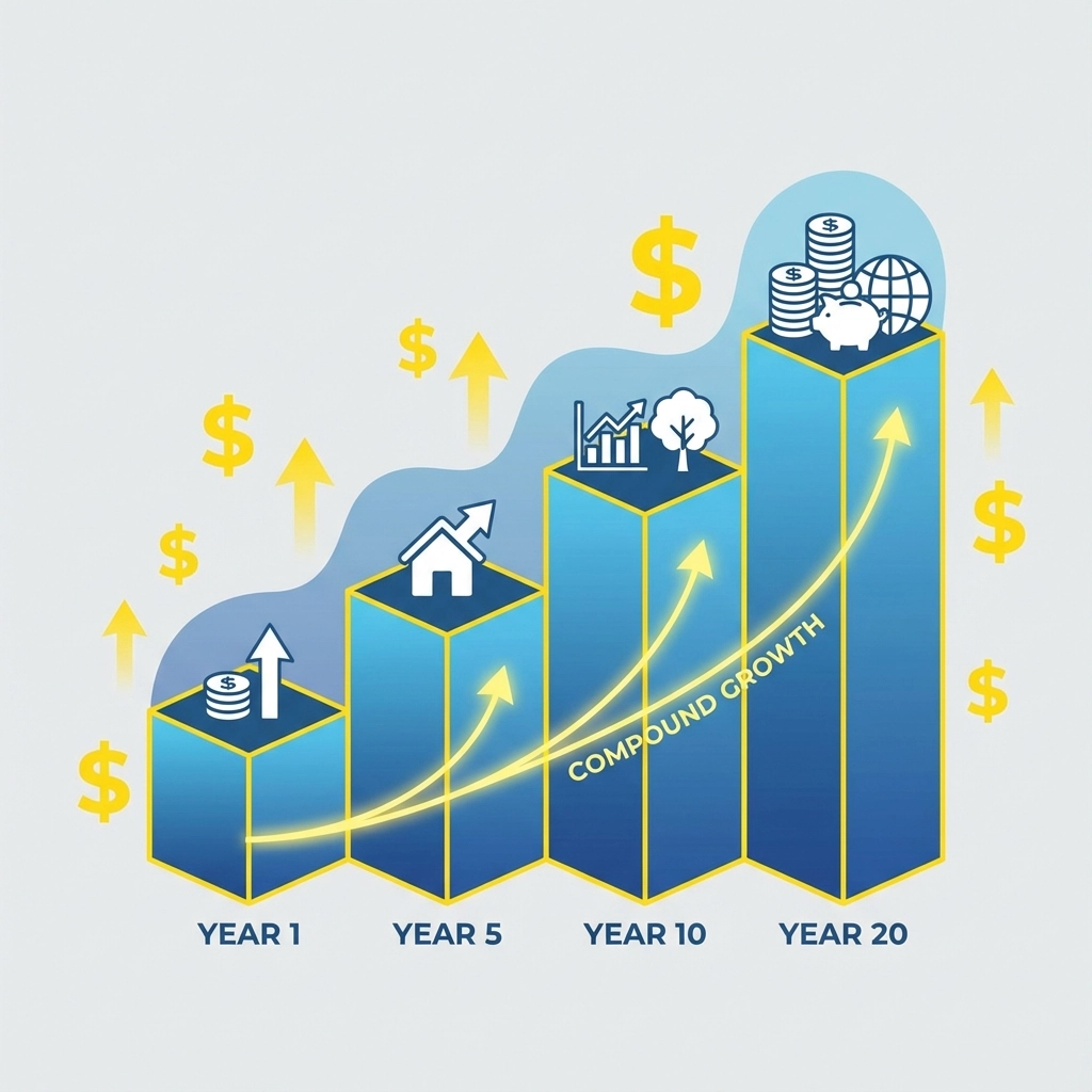 The key is starting now, even with small amounts. Time is your biggest advantage when building wealth. A $200 monthly investment starting at age 30 can grow to over $400,000 by retirement.